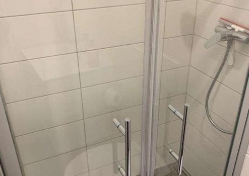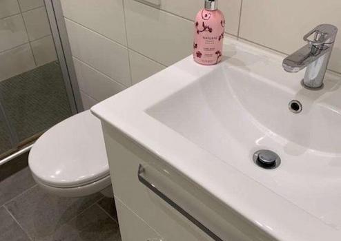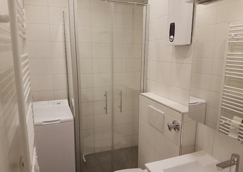 Luxuriöses Bad mit Downlights, begehbarer Dusche undWaschmaschine.