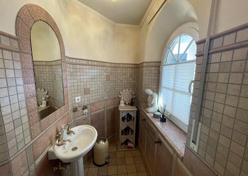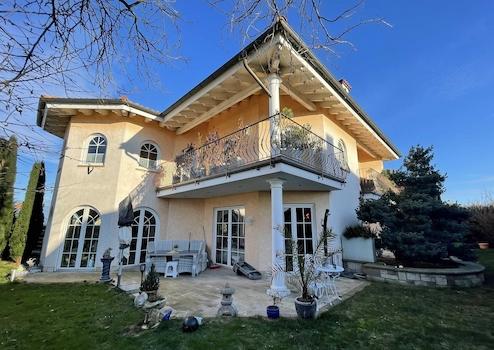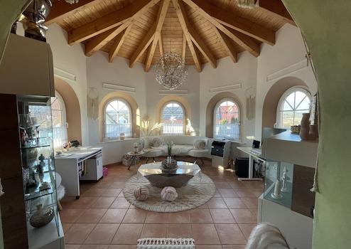 Dieses Traumhaus mit großzügigen, hellen Räumen sowie einer südwestlich ausgerichteten Sonnenterrasse ist mit hochwertigen Materialien und innovativer Heiztechnik (Erdwärme) ausgestattet. Edler Marmorboden (Rosso Verona), maßgefertigte Holzinnentüren mit zum Teil aufwendigen Glaseinlegearbeiten bzw. Bleiverglasung, diverse Wandmalereien sowie Stuck- und Spachteltechniken an den Decken spiegeln Eleganz und Luxus auf ca. 550 m² Wohn- und Nutzfläche wieder.