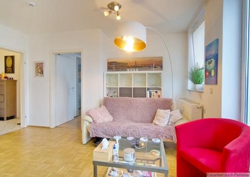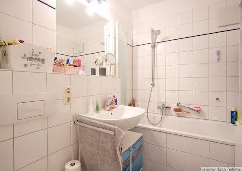 Sehr helle, schön möblierte 2-Zimmer-Wohnung inklusive PKW-Tiefgaragenstellplatz und inklusive Internetzugang. Die Wohnung befindet sich im 4. OG (mit Lift) und liegt sehr ruhig nach hinten raus, mit Balkon (Süd-Westlage, Balkonmöbel sind vorhanden).