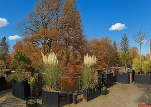 Zwei große Süd-West-Terrassen auf beiden Etagen eröffnen einen herrlichen Blick ins Grüne und schaffen eine außergewöhnlich großzügige Wohnatmosphäre.