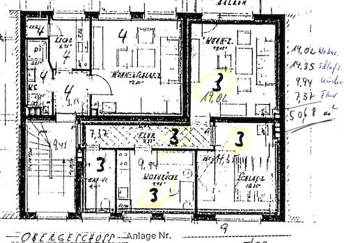 Wohnfläche gesamt: 228,25 m² (Fünf Wohnungen insgesamt)
