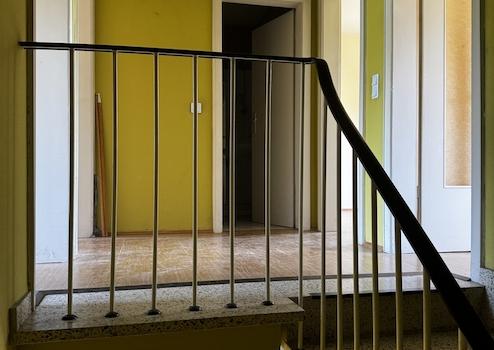 Über das massive Treppenhaus gelangt man in das Obergeschoss.