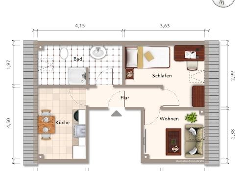 - 2-Raumwohnung mit 45,00 m² Wohnfläche