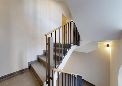 Die 3 Schlafzimmer, das Badezimmer, das Gäste-WC, Flur und Garderobe befinden sich im Hochparterre und sind über eine hochwertige Treppe verbunden.