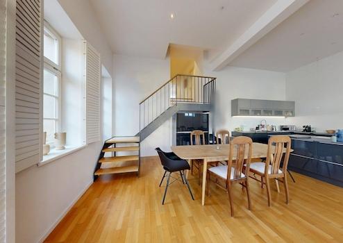 Das um 1850 errichtete Lagerhaus wurde im Jahr 2015 kernsaniert und zu 4 modernen Wohneinheiten in gehobener Ausstattung umgebaut. Durch die vorgenommenen Umwandlung in Wohnraum sind in den unterschiedlichen Ebenen im Wohnbereich Deckenhöhen von 4,34 m und im Schlafbereich von 3,24 m entstanden.