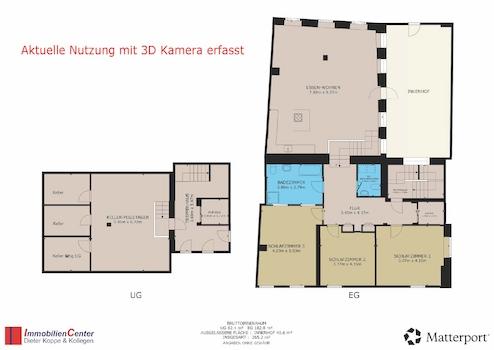 Das separate Wohnhaus ist ein Teil von drei Einheiten und wird als Wohnungeigentum Nr.3 mit Stellplatz, Lageraum und Freisitz im Schuppen verkauft. Die Grundstücksfläche mit 661 qm ist gemäß Teilungserklärung mit 1/3 ...