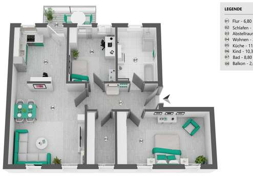 * Abstellraum innerhalb der Wohnung