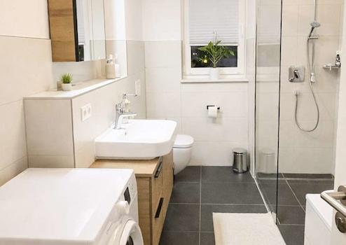 Das große Tageslichtbad ist mit einer ebenerdigen Dusche, einer großen Badewanne und einen Waschmaschinenanschluss ausgestattet. Die Fußbodenheizung sowie ein praktischer Abstellraum innerhalb der Wohnung ergänzt das Angebot ideal.