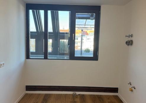 Herzstück der Wohnung ist der lichtdurchflutete Wohn- und Essbereich, der durch den direkten Zugang zur großen Dachterrasse besticht – ein idealer Ort zum Entspannen und Genießen.
