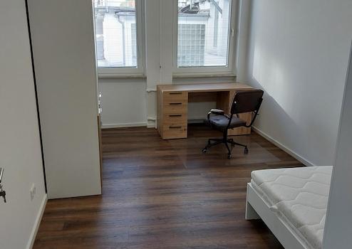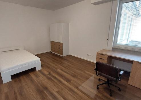 Die Gemeinschaftsfläche der WG-Einheit beträgt 94 Qm und ist ausgestattet mit 2 Duschbädern mit WC, Waschmaschine und Trockner, sep. Herren- und Damen-WC, voll ausgestatteter neuer Einbauküche mit Herd, Spülmaschine, Kühl-/Gefrierkombination, Esstisch und Stühlen. Die Appartementzimmer sind möbliert mit Schrank, Bett mit Sprungrahmen und Matratze, Schreibtisch und Schreibtischstuhl.