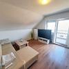 Dachgeschoss (ca. 27 m²): Wohnzimmer (mit Küchenzeile und Balkonzugang), Schlafzimmer, Diele, Bad