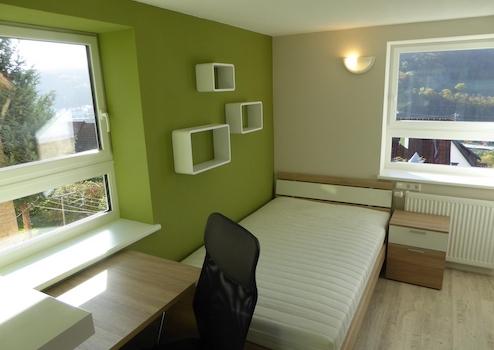 Die Zimmer sind fast komplett mit Eiche Massivholzmöbel ausgestattet. 500 Mbit Netzwerkanschluss in jedem Zimmer plus WLAN.