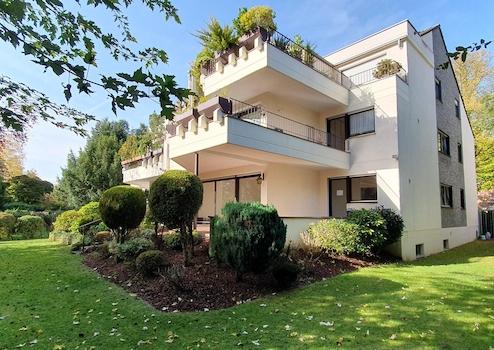 um eine Terrassenwohnung in Hochparterre in sehr ruhiger Grünlage,