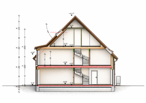 Im Erdgeschoss entstehen je Einheit ca. 64,01 m², ergänzt durch jeweils eine Terrasse mit ca. 10 m². Das Obergeschoss bietet pro Haushälfte ca. 58,06 m² Wohnfläche. Zusätzlich ist ein ausgebauter Spitzboden mit jeweils ca. 23,98 m² vorgesehen, der flexibel als Wohn-, Arbeits- oder Hobbybereich genutzt werden kann.