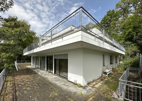 Das Gebäude wurde in Terrassenbauweise errichtet, die der Hanglage des Grundstücks angepasst ist. Die Erscheinung ist dominant und erhaben und dennoch der Umgebung angepasst und zeitlos modern. Drei Geschossebenen stehen für die Nutzung zur Verfügung: die untere Ebene ist der Eingangsbereich mit repräsentativen Empfangsräumen, Wirtschaftsbereichen, der Haustechnik und einer Einliegerwohnung für das Hauspersonal. Ebenfalls zugängig in dieser Ebene ist die große Garage für mindestens drei PKW.