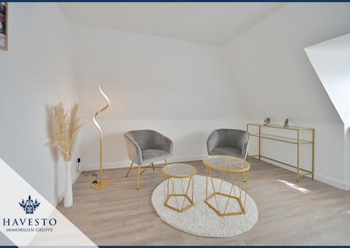 Das Obergeschoss beherbergt zwei Schlafzimmer sowie ein hochwertiges Wellnessbad mit Sauna und Whirlpool. Im Dachgeschoss wurde ein zusätzlicher Wohnraum geschaffen, der flexibel nutzbar ist.