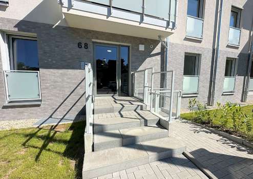 Die Außenanlage rund um das Mehrfamilienhaus wird gärtnerisch angelegt und gibt dem Objekt einen idyllischen Flair. Es gibt Abstellmöglichkeiten für Fahrräder und einen Zugang zu den Kellerräumen.