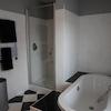 Badezimmer mit WT, Badewanne und Dusche bestückt.