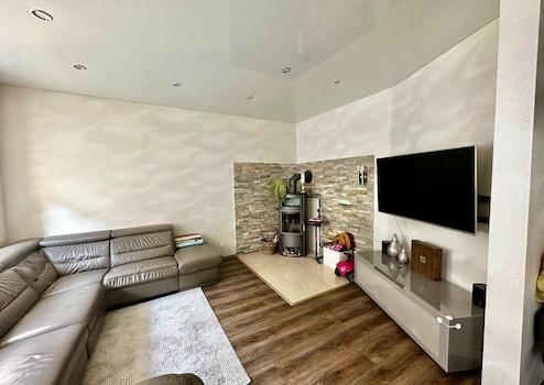In allen Wohnräumen – mit Ausnahme des Badezimmers – sind hochwertige Spanndecken verbaut. Diese überzeugen durch ihre gleichmäßige Optik, integrierte Beleuchtungsmöglichkeiten und einen besonders pflegeleichten Deckenaufbau.