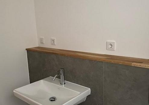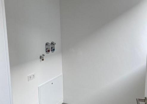 Zur Wohnung gehören zwei gemütliche große Zimmer, die sowohl als Schlafräume, Arbeitszimmer oder Gästezimmer nutzbar sind. Zu einem der Zimmer gehört noch ein separater Umkleideraum. Das ruhig gelegene Schlafzimmer ist großzügig dimensioniert und schafft auf 15 m² einen angenehmen Rückzugsort für erholsame Nächte. Direkt angrenzend liegt das modern ausgestattete Duschbad. Im modernen Bad erwarten Sie eine große ebenerdige Dusche mit Glastüren, ein großzügiger Waschtisch mit Holzablage sowie ein WC – eine Kombination aus Komfort, Funktionalität und elegantem Design. Auf der linken Seite des Flurs befinden sich ein separates und praktischer Hauswirtschaftsraum mit Waschmaschinenanschluss und Regalflächen, der zusätzlichen Stauraum bietet und für Ordnung im Alltag sorgt.