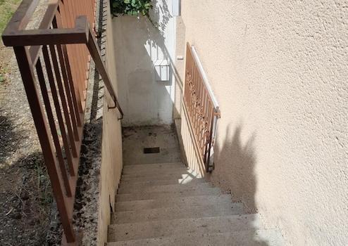 Zu erneuernder Teppichboden im 2. OG. Großes Studio mit 3 großen Fenstern. Duschbad dunkel gefliest und kleines Arbeitszimmer oder Kaffeeküche oder Gästeschlafzimmer oder was auch immer.?
