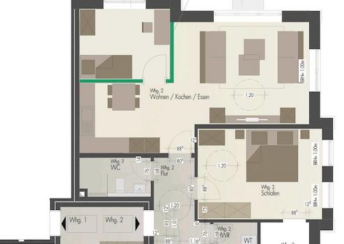 Für die Wohnung ist ein Mietvertrag mit 2 Jahren Mindestmietdauer vorgesehen.