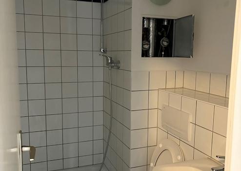 * innenliegendes gefliestes Duschbad