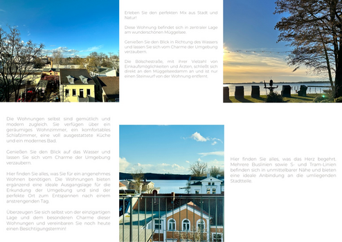 Erleben Sie den perfekten Mix aus Stadt und Natur! Die Bölschestraße, mit ihrer Vielzahl von Einkaufs- und Freizeitmöglichkeiten, einer Reihe toller Restaurants und zahlreichen Ärzten, schließt sich direkt an den Müggelseedamm an und ist nur einen Steinwurf von der Wohnung entfernt. Hier finden Sie alles, was das Herz begehrt. Mehrere Buslinien sowie S- und Tram-Linien befinden sich in unmittelbarer Nähe und bieten eine ideale Anbindung an die umliegenden Stadtteile. Die Wohnung bietet somit eine ideale Ausgangslage für die Erkundung der Umgebung und ist der perfekte Ort zum Entspannen nach einem anstrengenden Tag.