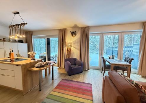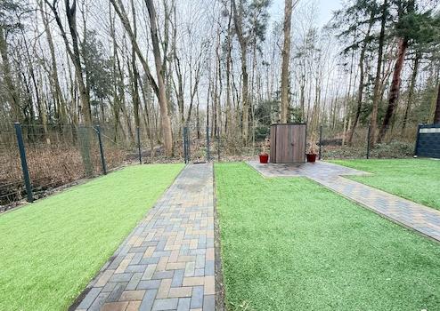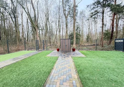 Ein echtes Highlight ist die ausschließliche Gartennutzung, die nur dieser Wohnung zugeordnet ist. Der pflegeleichte Garten mit hochwertigem Kunst-rasen bietet einen freien Blick ins Grüne und schafft eine seltene Kombination aus Wohnungskomfort und Hausgefühl – ideal zum Entspannen, Genießen oder für gesellige Stunden im Freien. Für Naturliebhaber ist ein direkter Zugang zum anliegenden Wald vorhanden, der zum Spazierengehen in die Natur einlädt.