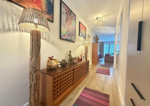 Die Wohnung ist mit einer Fußbodenheizung in allen Räumen ausgestattet, die über eine digitale Heizungssteuerung geregelt wird. Jeder Raum ist über ein eigenes Bedienfeld steuerbar. Zusätzlich sorgt eine kontrollierte Be- und Entlüftung für ein angenehmes Raumklima. Eine Gegensprechanlage mit Kamera, Glasfaseranschluss sowie ein funktionaler Hauswirtschaftsraum mit maßgefertigten Einbauschränken unterstreichen den hohen Ausstattungsstandard. Die bodentiefen Fenster sowie die großzügige Hebeschiebetür zum Sommergarten sind nahezu vollständig mit Fliegengittern versehen und verbinden Wohnkomfort, Frischluftzufuhr und Funktionalität auf angenehme Weise. Für weiteren Sichtschutz sorgen die teilweise angebrachten Plissees an den bodentiefen Fenstern.