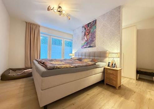 Die Wohnung verfügt über zwei Schlafzimmer, darunter ein großzügiges Hauptschlafzimmer mit maßgefertigtem, hochwertigem Kleider-Einbauschrank, der ebenfalls im Kaufpreis enthalten ist. Ein weiteres Zimmer eignet sich ideal als Gäste-, Arbeits- oder Kinderzimmer.