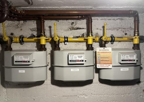 Die Beheizung der Wohneinheiten erfolgt über Gas-Etagenheizungen des Typs Vaillant atmoTEC classic von Vaillant. Die Thermen der Wohnungen im 1. Obergeschoss sowie im Dachgeschoss sind jeweils in den Küchen untergebracht. Die Therme der Erdgeschosswohnung befindet sich im Keller. Die Gas- und Stromzähler sind zentral im Keller installiert.