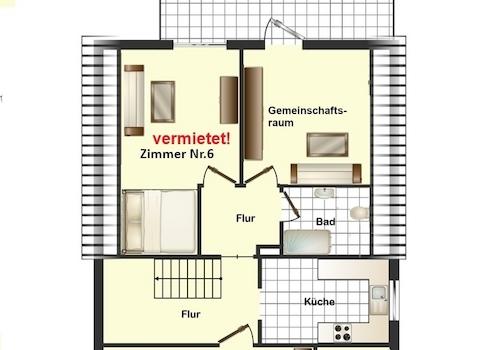 WG-Zimmer 6 Mtl. Warmmiete EUR410,--Wohnfläche m² ca. 13 m² - frei per 01.05.2026 oder früher!