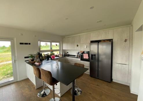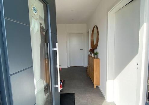 Dieses moderne Einfamilienhaus (Baujahr 2024, Fertighaus) kombiniert zeitgemäße Architektur, energieeffiziente Bauweise (KfW-55) und ein wohnliches Ambiente auf rund 170 m² Wohnfläche – verteilt auf zwei großzügige Vollgeschosse.