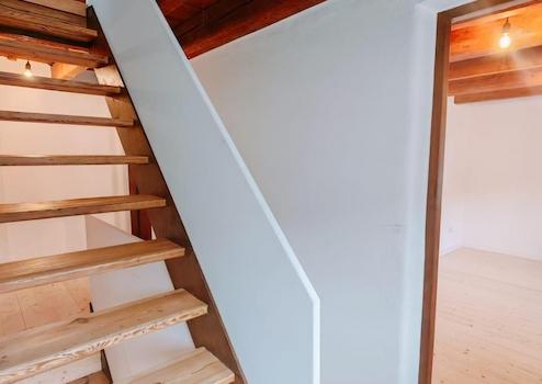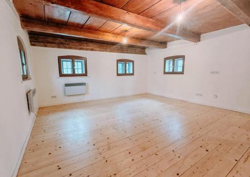 Die Wohnfläche verteilt sich über mehrere Ebenen und bietet großzügige, lichtdurchflutete Räume mit individuellen Grundrissen. Sichtbare Holzbalken, charaktervolle Deckenhöhen und liebevoll erhaltene Details unterstreichen den einzigartigen Charakter des Hauses.