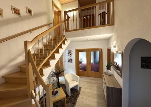 Dieses Einfamilienhaus aus 1999 überzeugt mit ca. 140 m² Wohnfläche, sehr guter Substanz und einem außergewöhnlich gestalteten Grundstück von rund 1.410 m². Großzügige, helle Räume, zwei Bäder, ein Kamin und mehrere, teils gemütlich überdachte Terrassen schaffen ein Wohngefühl mit Qualität und Komfort. Der liebevoll angelegte Designgarten setzt ein echtes Highlight. Absolut gepflegt, energieeffizient und sofort nutzbar – eine Immobilie, die Raum für Alltag, Entspannung und langfristige Wohnperspektiven bietet.