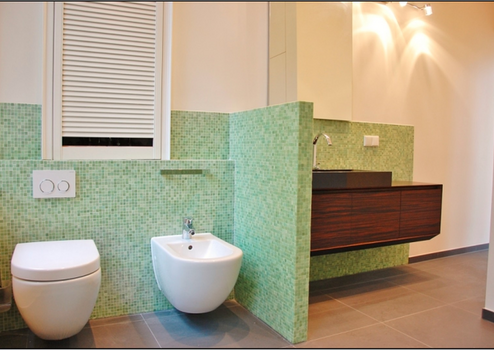 accessories by Antonio Lupi and tiles by Sicis Mosaik and forms