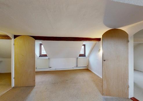 Das Dachgeschoss ist ausgebaut, gehört jedoch aufgrund der Deckenhöhe nicht zur offiziellen Wohnfläche. Es verfügt über eine kleine Küche, ein kleines Duschbad mit WC sowie zwei Zimmer mit angrenzender Ankleide.