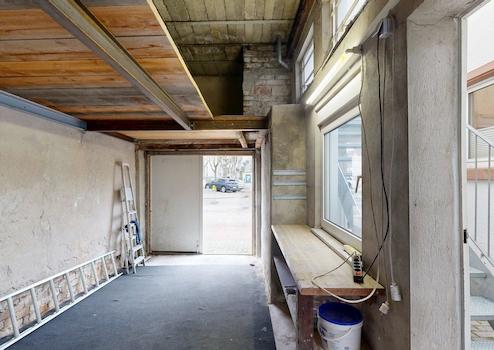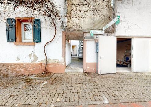 Die sanierungsbedürftige Immobilie ist von zwei Seiten zugänglich. Der Hauseingang befindet sich auf der Ostseite, während der Innenhof sowie die Garage von der Westseite aus erreichbar sind. Durch diese getrennten Zugänge bietet die Immobilie ein hohes Maß an Flexibilität.