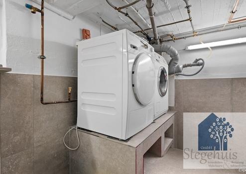 Die enorme Nutzfläche von ca. 158 m² ist aufgeteilt in die Kellerräume im Haus und die Räumen Draußen. Der Kellerräume, die Platz für Lagerung und die Haustechnik (Gasheizung) bieten, sowie auf für die Waschmaschine und den Trockner.