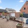 Außen Raume, der große Garage mit davor der Doppel Carport, die Scheune hinter im Garten sowie auch der Überdachte Terrasse.