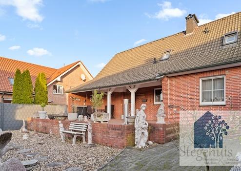 Das 606 m² große Grundstück bietet einen pflegeleichten Garten mit viel Platz. Die Überdachte Terrasse lädt zu entspannten Stunden im Freien ein. Das Objekt befindet sich in einer ruhigen, etablierten Wohnlage in Gronau, die durch eine hervorragende Infrastruktur und die Nähe zur Natur überzeugt.
