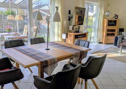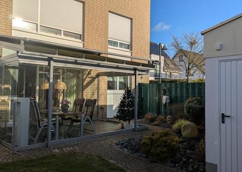 Terrasse, Wintergarten, Garten, Keller, Vollbad, Duschbad, Sauna, Einbauküche, Gäste-WC, Teppichboden, Fliesen