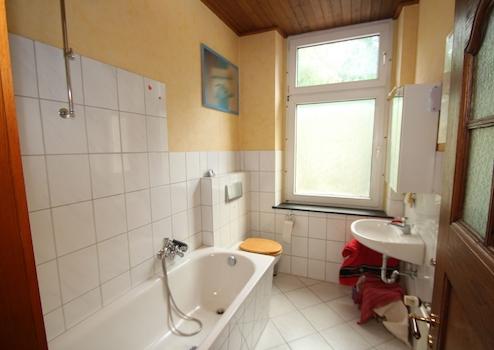 - Bad mit Fenster, Wanne, WC, Waschbecken, Tapeten