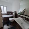 Im Obergeschoss setzt sich das AHA-Erlebnis in diesem Haus fort. Massive Vollholz-Eichenböden, teilweise Orignaltüren in Kombination mit den schönen Holzfenstern sind allein schon ein Highlight. Die Armaturen im Bad sind von der Manufaktur Philippe Starck, die Fliesen aus Italien, eine bodengleiche Dusche und Wanne ebenfalls integriert. Auf dieser Ebene könnte ein Raum vor dem Elternschlafzimmer auch als Ankleidezimmer umfunktioniert werden.