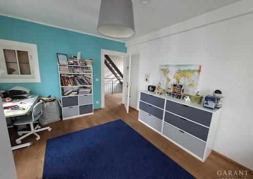 Das Dachgeschoss ist als Studiozimmer ausgebaut, freigelegte Originalbalken lassen diesen Raum ganz besonders wirken. Ein Badezimmer (Leitungen vorhanden) oder eine Sauna könnte noch eingebaut werden.