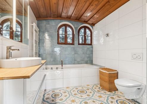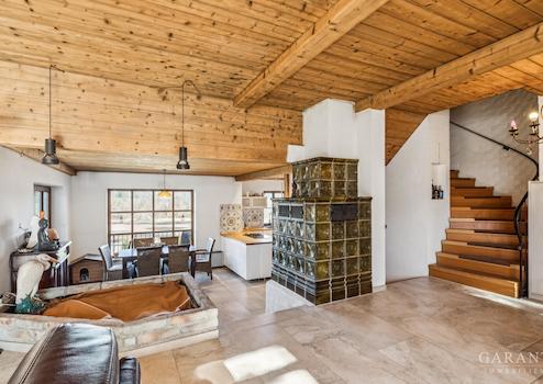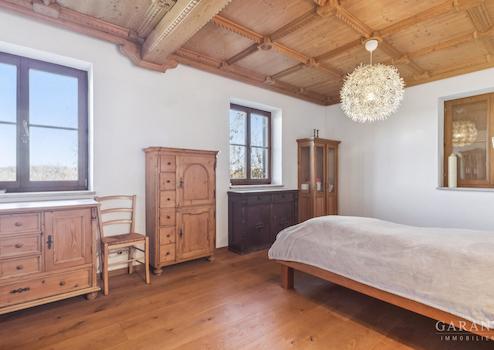 Im Erdgeschoss erwarten Sie rund 153 m² lichtdurchflutete Wohnfläche. Nach dem Windfang mit Panoramafenstern öffnet sich ein weitläufiger Wohn- und Essbereich mit gemütlichem Kachelofen. Hier, wie auch im angrenzenden Wintergarten mit direktem Zugang zum Balkon, genießen Sie den herrlichen Blick ins Grüne und auf den nahegelegenen Weiher. Eine offene Küche mit Speis und zusätzlichem Holzofen lädt zum geselligen Kochen ein. Ein großzügiges Badezimmer, Schlafzimmer mit Ankleide sowie ein Gäste-WC runden diese Ebene harmonisch ab.