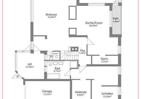 Falls Sie noch mehr Platz benötigen, beispielsweise für ein Mehrgenerationenhaus oder um Arbeiten und Wohnen unter einem Dach zu vereinen, besteht die Möglichkeit, zusätzlich eine ca. 86 qm große eigenständige 3 Zimmer-Wohnung mit Terrasse und Garten im Untergeschoss mit Hanglage zu erwerben.