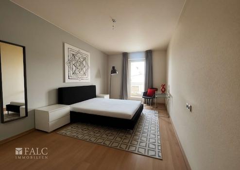 Das separat gelegene Schlafzimmer bietet ausreichend Platz für ein Doppelbett und einen Kleiderschrank. Auch von hier aus besteht direkter Zugang zum Balkon, was die Wohnung besonders attraktiv macht.