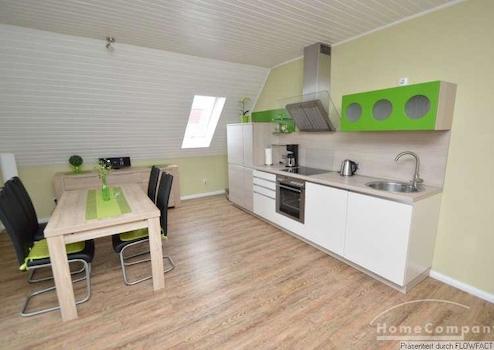 Diese Wohnung wird nach einer Komplettsanierung zur Vermietung angeboten. Der große helle Wohnraum mit einer integrieten Küchenzeile, ist in einen Wohn und einen Essbereich aufgeteilt. Der Zugang zum Balkon läßt sich weit öffnen. Das Schlafzimmer ist mit einem Doppelbett ausgestattet. Die Wohnung ist für eine Person oder ein Paar geeignet. Bei 2 Personen erhöht sich die Miete nach Absprache.
